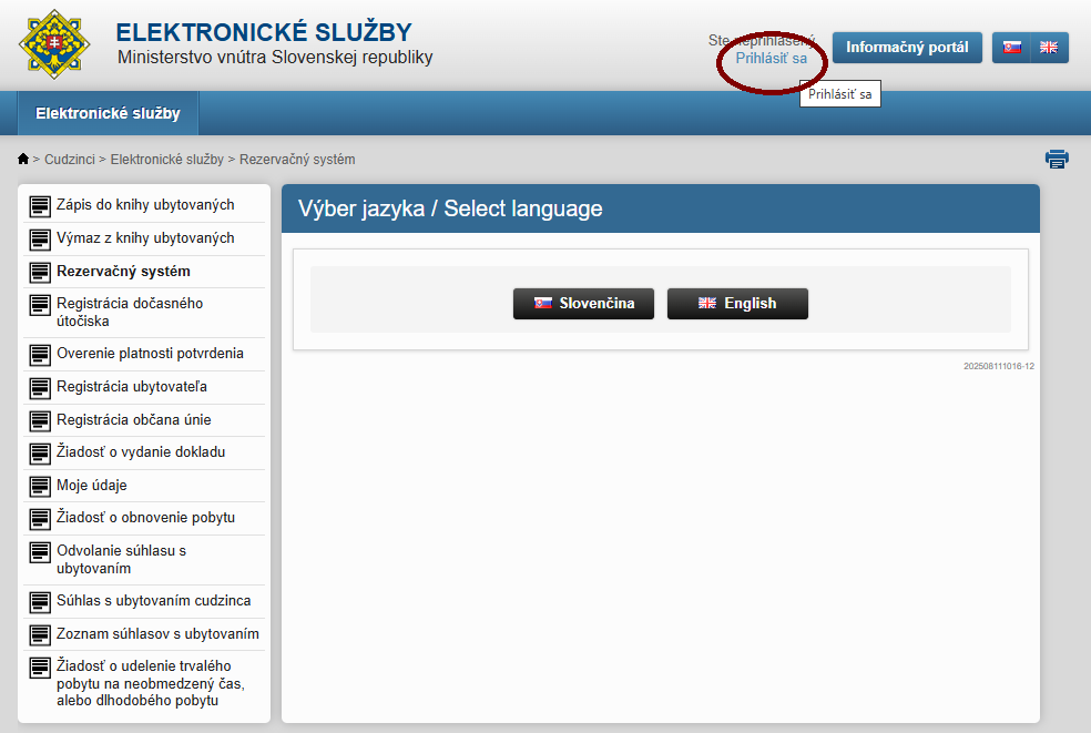 Якщо ви входите на портал МВС з телефона з NFC, то вам потрібно встановити застосунок eIDENTITA (App Store, Google Play). Потім перейти на сайт бронювання та нажати Prihlásiť sa