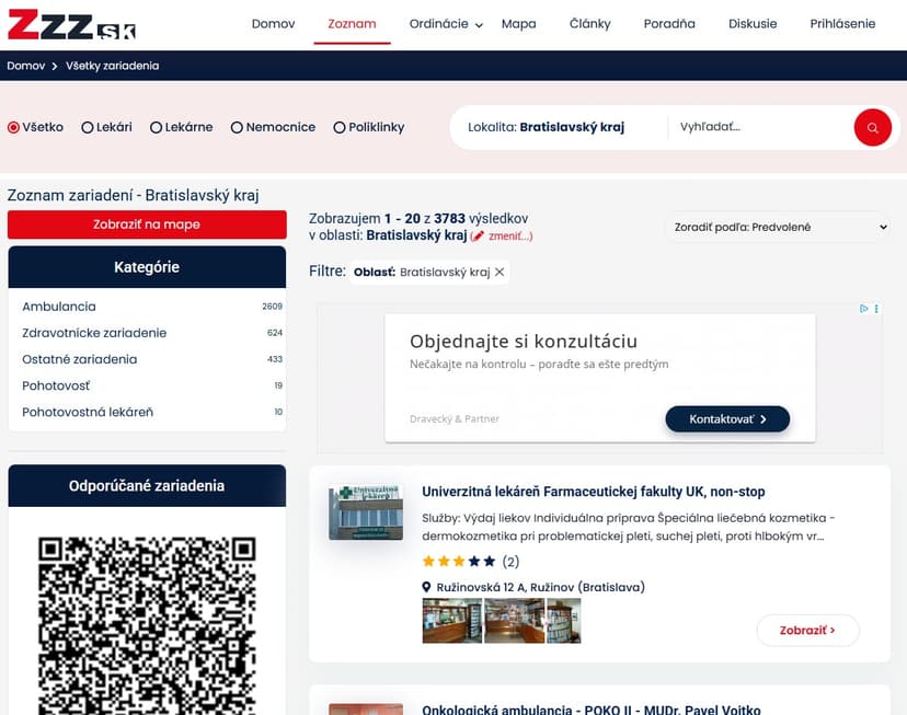В Словаччині знайти потрібного лікаря або медичний заклад можна на сайті zzz.sk. На сайті можна: шукати клініки та лікарів за містом, спеціальністю, мовою прийому; переглянути контактні дані, адреси та робочий час закладів