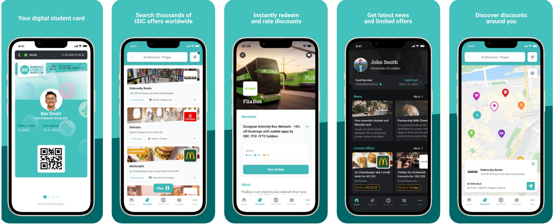 Приложение “ISIC” - приложение с электронной версией Вашей карты ISIC, где также есть купоны на скидку и дополнительные предложения. Приложение также содержит фильтры, с помощью которых легче найти те скидки, которые интересуют в данный момент времени. Пользование приложением бесплатно, но активация электронной версии ISIC стоит 10 евро.Кроме мобильного приложения, университеты часто предоставляют дополнительные скидки и купоны в начале учебного года. Обычно их выдают вместе с prolongačnou známkou в виде печатной брошюры или листовки с физическими купонами и специальными предложениями для студентов конкретного университета.