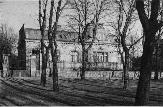Šrobarov sad — это место, которое всегда было важной частью городского пространства. На этом старом фото видно, что когда-то здесь еще не было многих деревьев — только простые тропинки и открытые пространства, которые постепенно начинали осваивать для отдыха горожан.