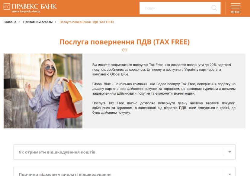 - В Украине через партнёра: Компенсацию Tax Free в Украине можно получить и через партнёрские банки, которые сотрудничают с международными операторами возврата НДС, в частности Правэкс-Банк, который работает с Global Blue. После проставления таможенного штампа путешественник должен обратиться в одно из отделений банка (рекомендуется предварительно позвонить для записи). Необходимо предоставить чек Tax Free, паспорт и форму с покупки с печатью таможни. Возврат осуществляют наличными в гривнах по внутреннему курсу банка или на банковскую карту примерно в течение 10–15 дней.