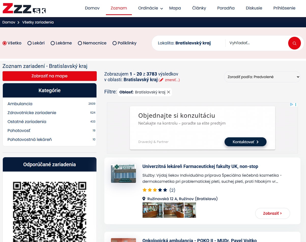 В Словаччині знайти потрібного лікаря або медичний заклад можна на сайті zzz.sk. На сайті можна: шукати клініки та лікарів за містом, спеціальністю, мовою прийому; переглянути контактні дані, адреси та робочий час закладів