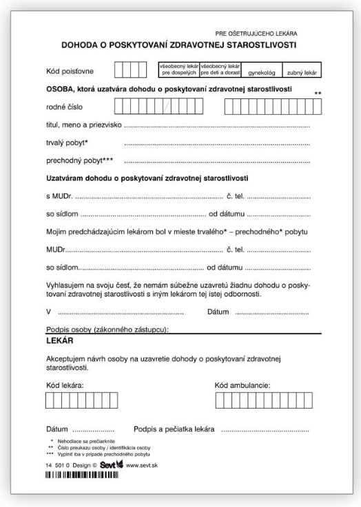 - Підпишіть договір: Зателефонуйте або прийдіть до клініки, підпишіть "zmluva o poskytovaní zdravotnej starostlivosti" це безкоштовно.
